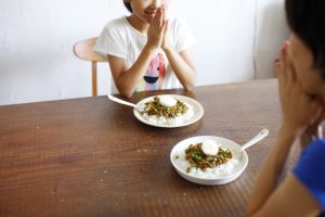⑥水分があらかたとんだら、火を止めて、仕上げに「二代目のはちみつ」を少々。お好みにもよりますが、2人分で大さじ1~2杯くらい。娘にまかせると、ついついたくさん入れてしまいます。甘さはおいしさのうち、暑くて食欲が落ちている夏でも、ひとさじのはちみつで普通のドライカレーがぐっとおいしさを増し、食が細い娘も、おかわり必至です。