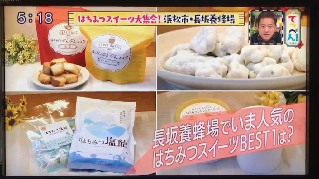 8月3日「はちみつの日」にテレビ静岡「てっぺん!」(毎週月~金午後4時45分より)にて、長坂養蜂場のこの時期人気のスイーツランキングを放送していただきました!