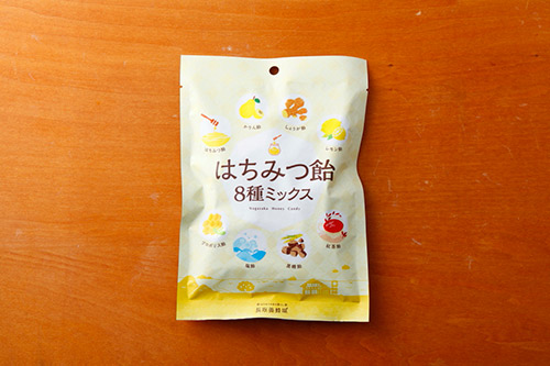 8種ミックスには、はちみつ飴、塩飴、かりん飴、紅茶飴、プロポリス飴、レモン飴、しょうが飴、黒糖飴が入っています。