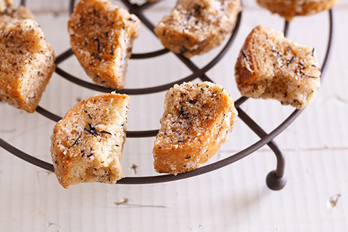 キューブ型でコロコロしたラスクにたっぷり15%はちみつを配合しました。