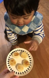 完成~♪お皿を持っていくとすごい早さで寄ってくる次男。