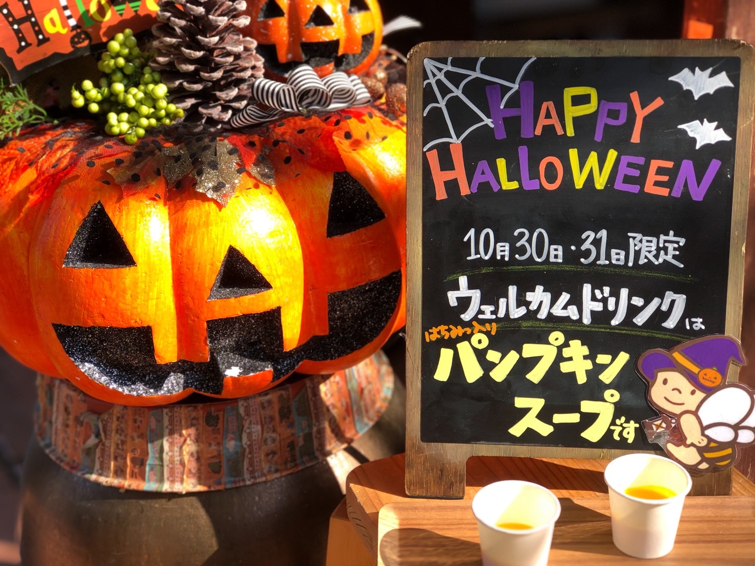 また、ウエルカムドリンクでは、今日と明日限定で、「ハニーパンプキンスープ」をお召し上がりいただいています。
