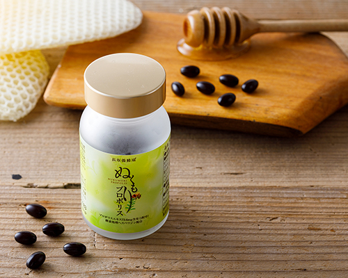 サプリメントタイプのぬくもりプロポリスは、ひと粒あたり“プロポリス”を72.6mgと高配合しています。