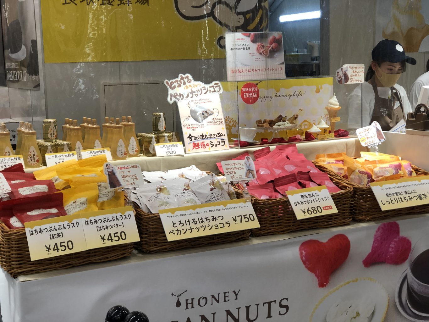 長坂養蜂場では地下1階にて出店(2月16日までです)しておりますのでお店が定休日(第二火曜日・水曜日)や週末もはちみつソフトクリームがたべれるんですっっっ