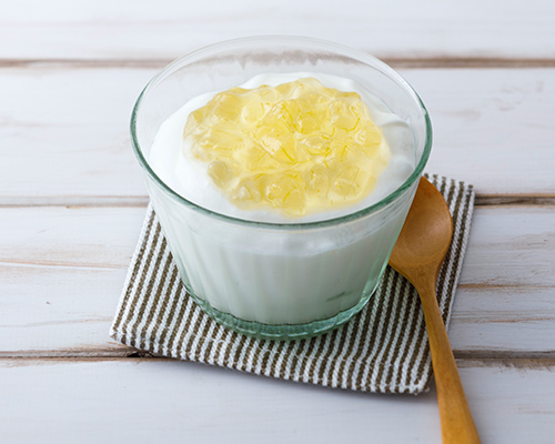 ヨーグルトにかければ、健康面をおいしくサポートする「アロエはちみつヨーグルト」の出来上がりです。