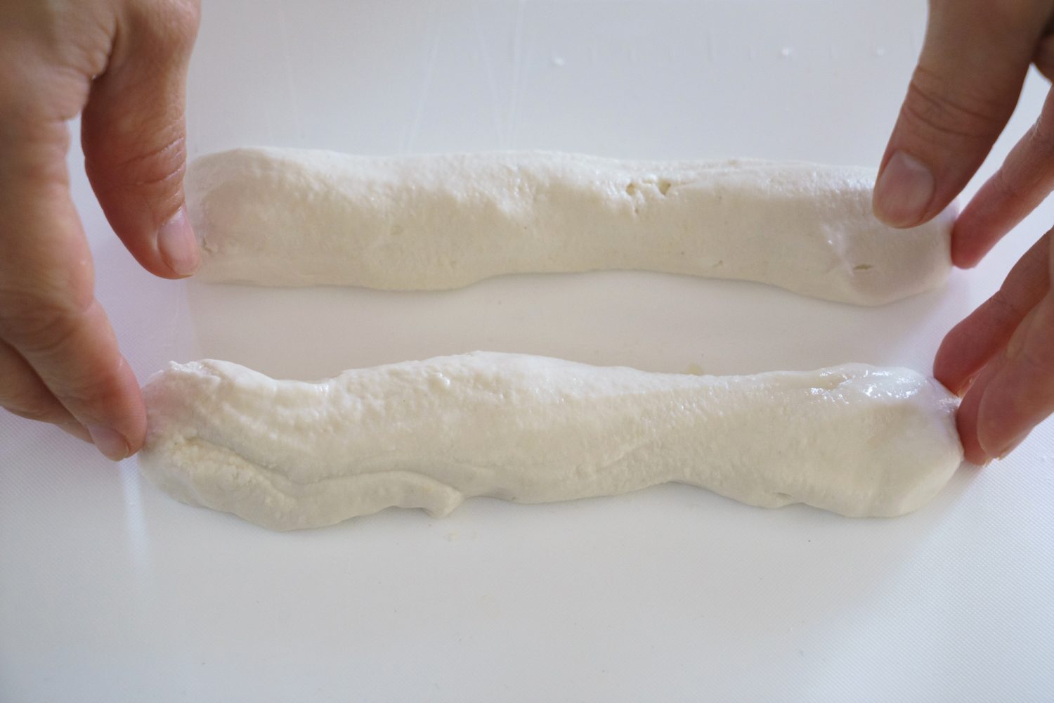 こねたら、直径2㎝くらいの棒状に伸ばします。