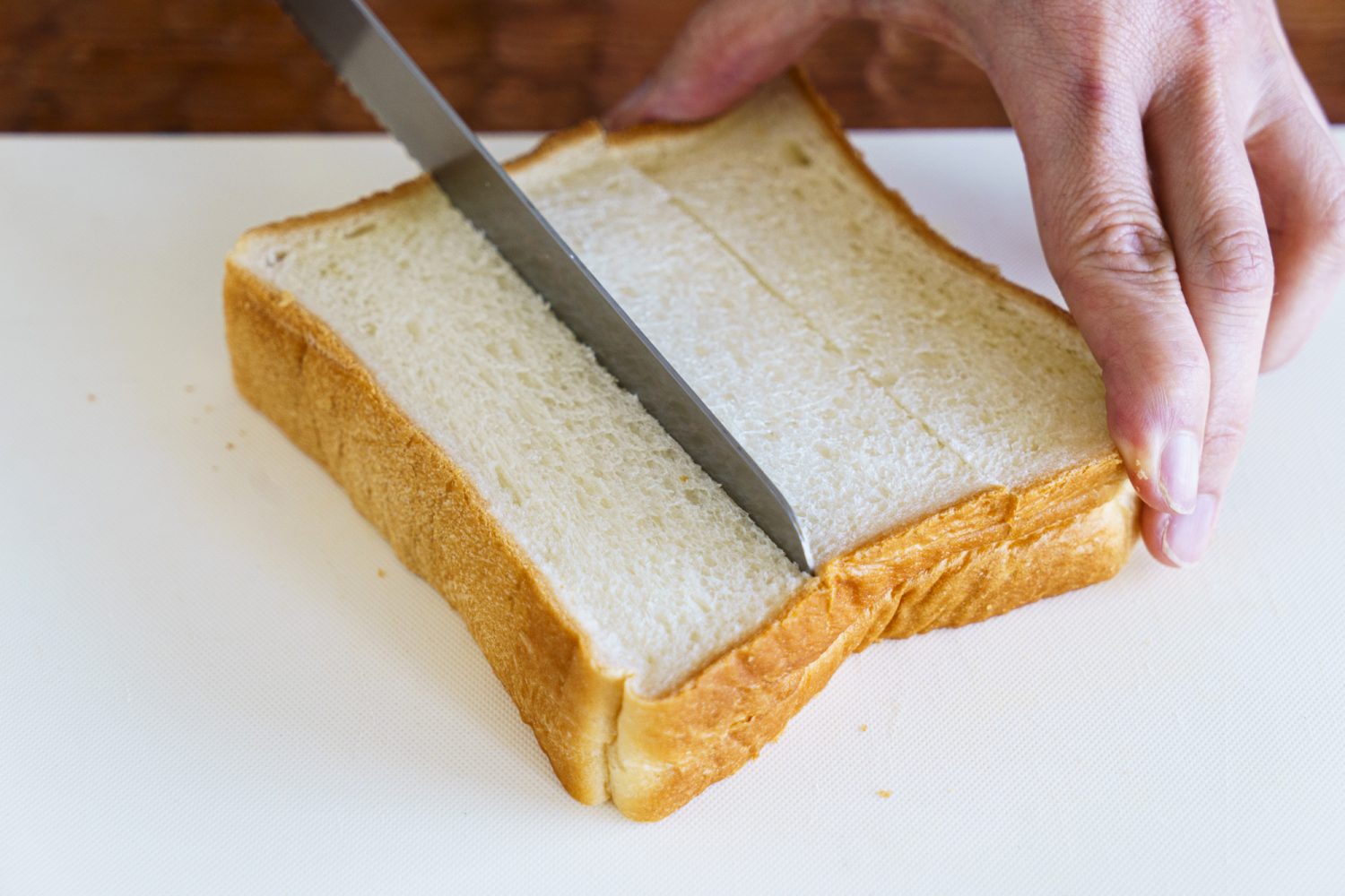 数えきれないほどあるはちみつトーストの中で、地味だけど私が偏愛するサワートーストを作ってみました。まずは、バターがしみ込みやすいように「井」の字形に切り込みを入れます。