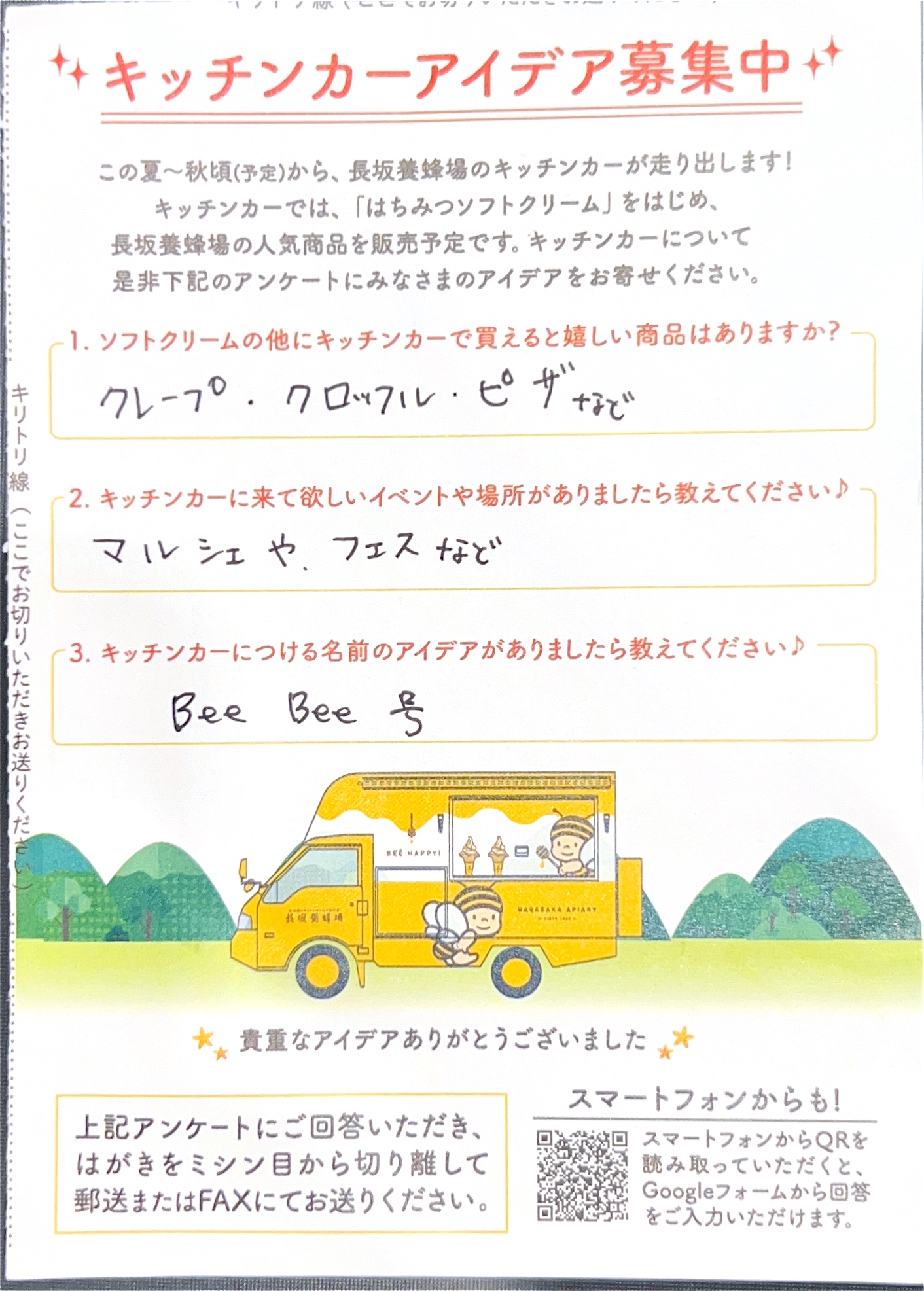 キッチンカーでのはちみつスイーツの販売、わくわくしますね!