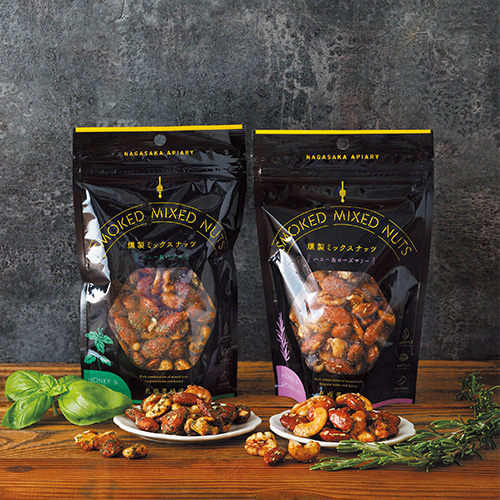 燻製の香りと色々なナッツの歯ごたえで、クセになる美味しさに仕上げました。