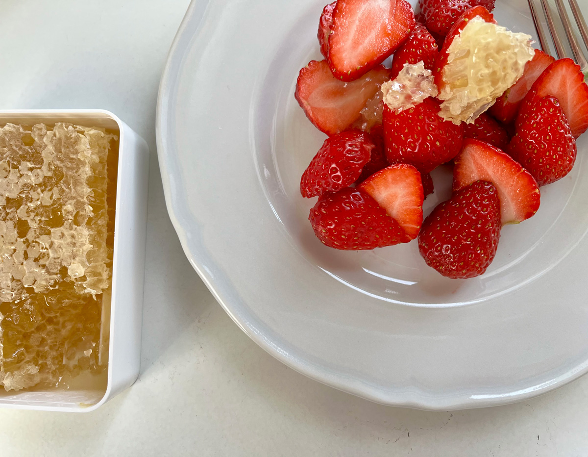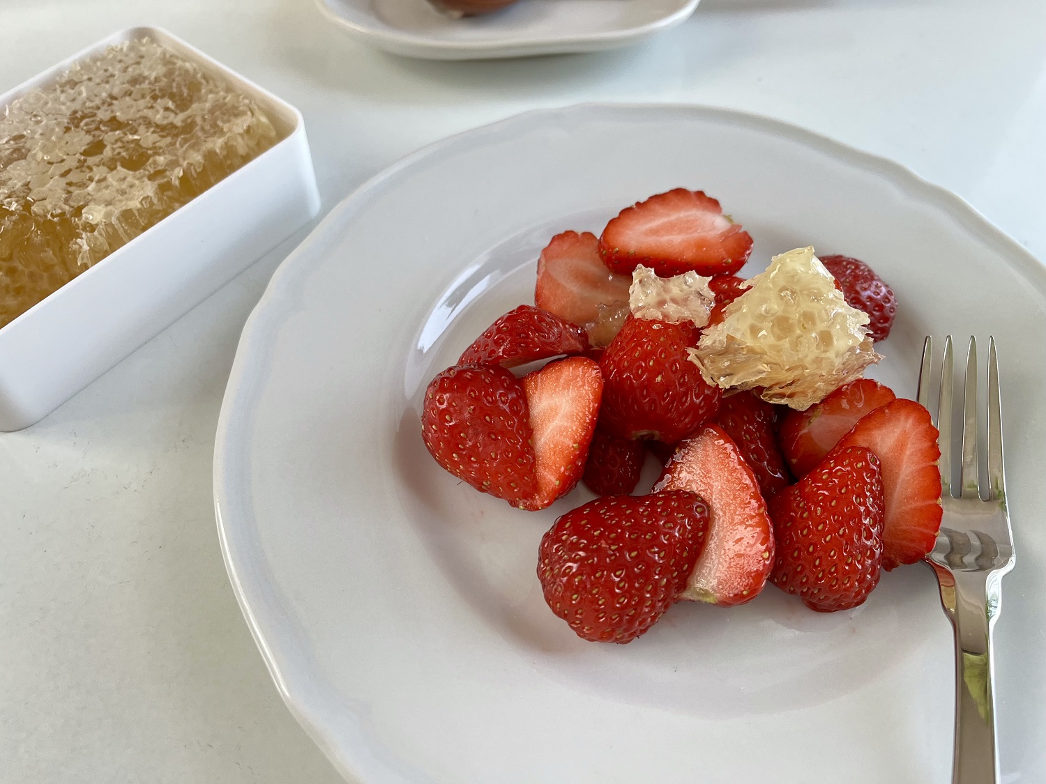 今回は、お皿に季節の果物を盛って、そのままの巣蜜をただ静かに味わいたい気分でした。自分を少しだけ甘やかすような、とてもやさしい時間にすら感じました。