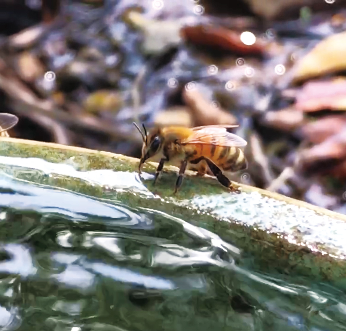 ※水を運ぶときは蜜のようにエネルギー補給ができないため、ミツバチはまっすぐ巣へ戻る必要があります。だからこそ、水場が近くにあることがとても大切なのです。