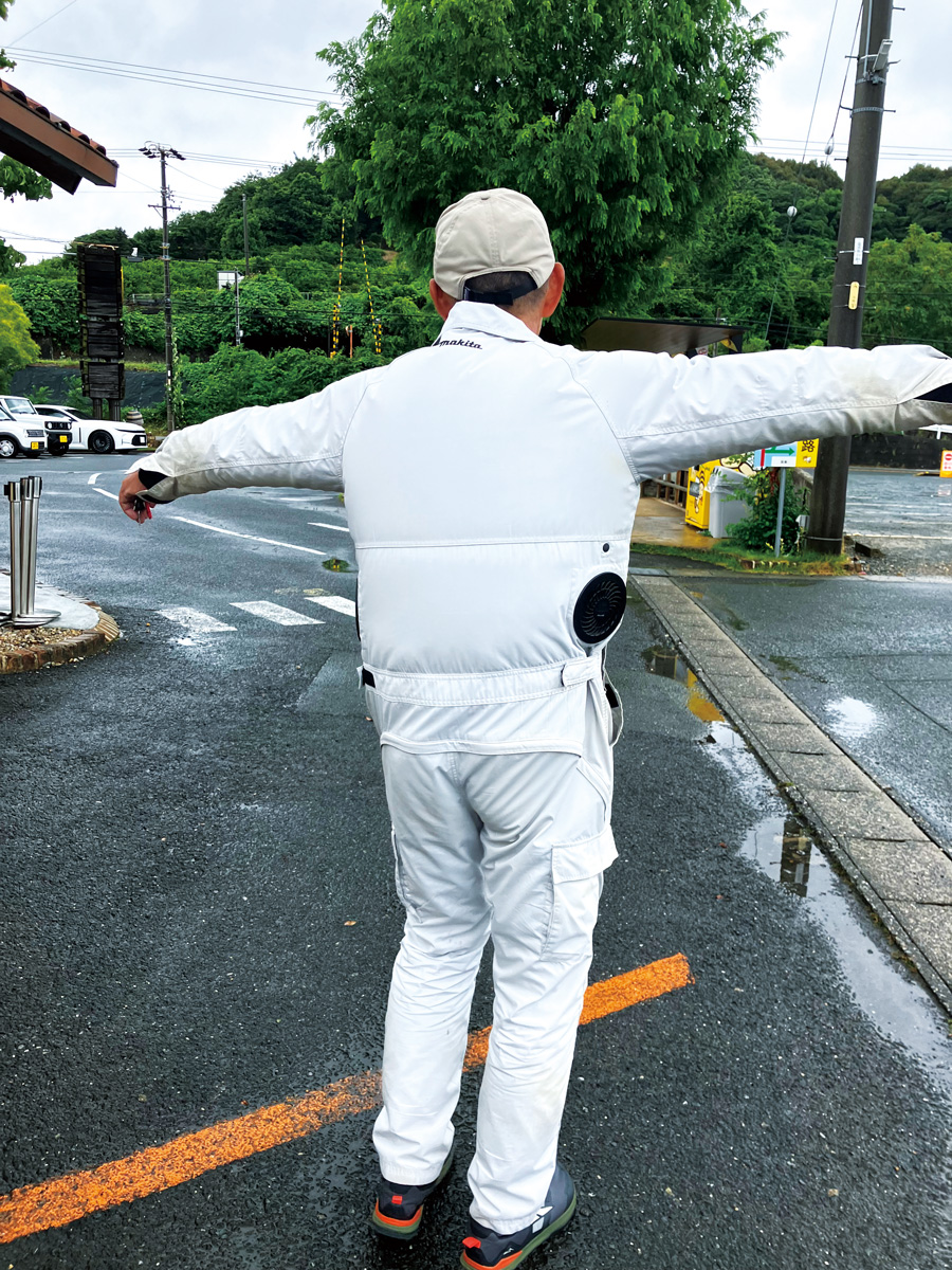 ▼ファン付きベストでパンパンに膨らんだ養蜂部メンバー