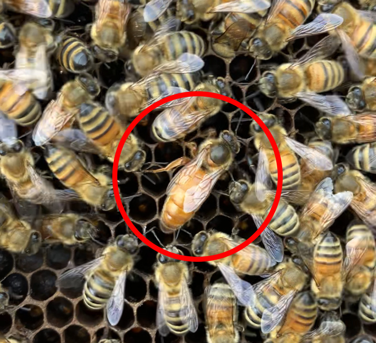 ▲1つの巣箱に女王バチは1匹だけ。ふっくらとお腹が大きいのが特徴です。
