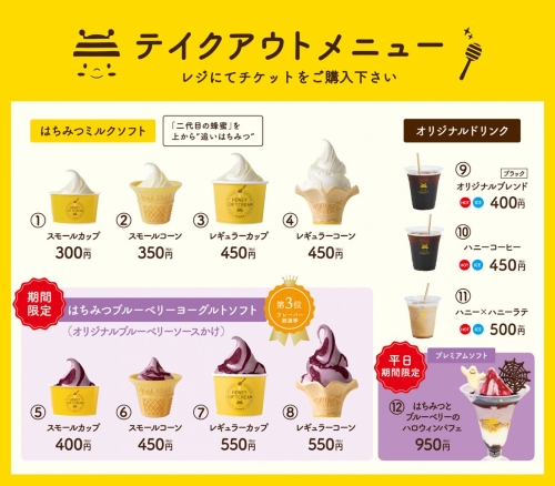 はちみつ専門店ならではの絶品アイス、『はちみつソフトクリーム』が、皆様のお越しをお待ちしております。