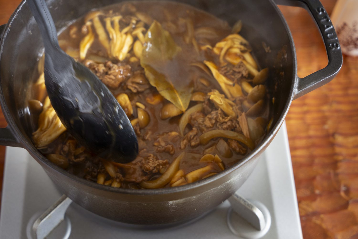 そんなわけで、今月はハッシュドビーフを作ってみました。煮込み時間はわずか数分。でもしっかり深みのある味でおいしいのは、仕上げに加えたた「三代目の蜂蜜」のおかげ。ご飯の代わりに、バゲットを添えるのもおすすめですよ~!