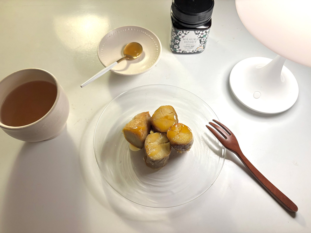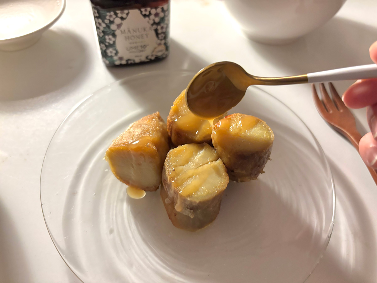 焼きいもにマヌカハニーをとろりとかけた「ご褒美おやつ」