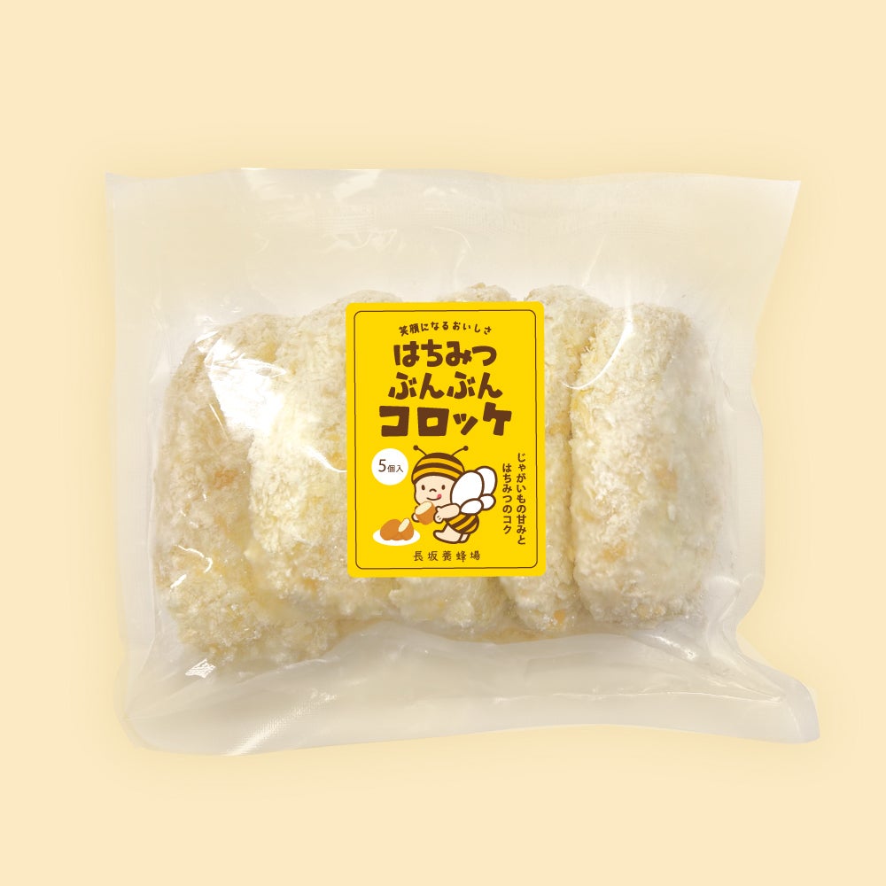 開発のきっかけは、三代目社長・長坂善人の養蜂修業時代にさかのぼります。転地養蜂の本場・北海道で、連日の作業にくたくたになっていたある日。たまたま食べた「北海道産キタアカリのコロッケ」のおいしさに、心からの感動を覚えました。